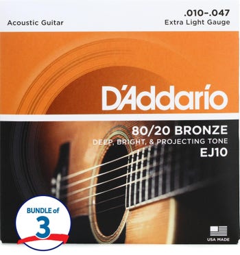 EJ10 80/20 Bronze Acoustic Guitar Strings (3 Pack) - .010-.047 Extra Light