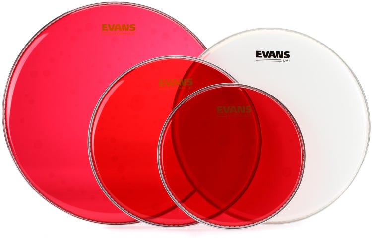 3-piece Tom Pack with 10", 12", and 16" Clear Red Batter Heads and Bonus 14" Coated Snare Head