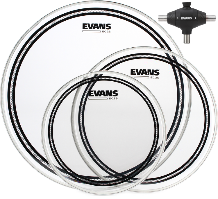 New Evans EC2S Clear 3-piece Tom Pack with Pull Cord Drum Key - 10/12/16 inch