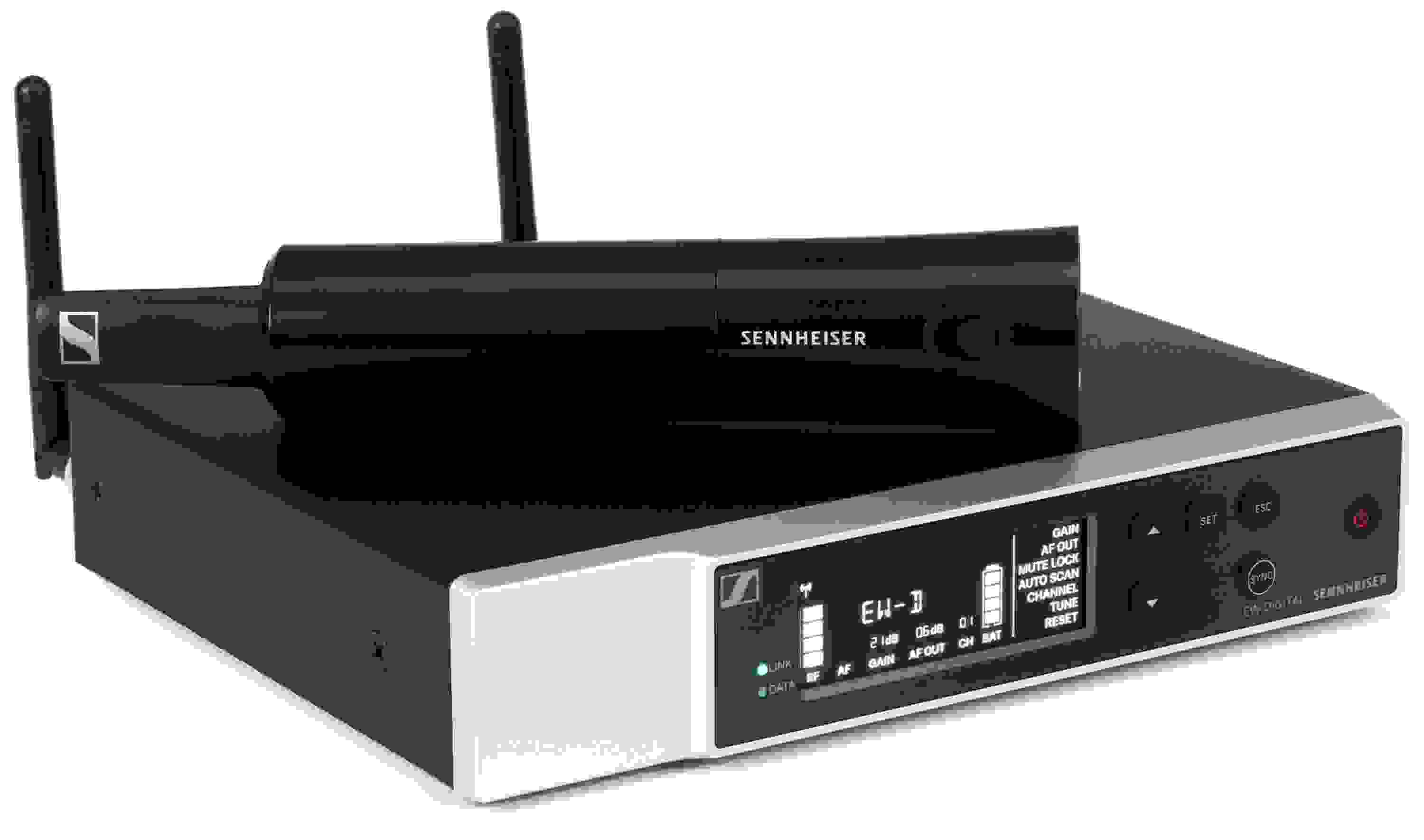 The Sennheiser EW-D SKM-S wireless base set is ready to rock with your existing Sennheiser (or compatible) mic capsule. It includes everything else you need to get up and operational: a handheld transmitter, a receiver, a rack kit, and accessories.