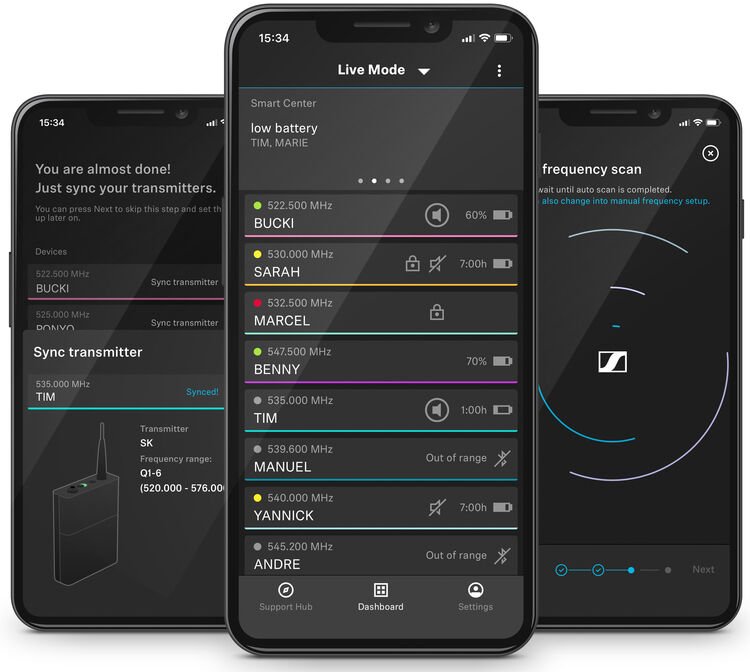 - Sennheiser Smart Assist mobile app (iOS/Android) provides configuration and monitoring tools