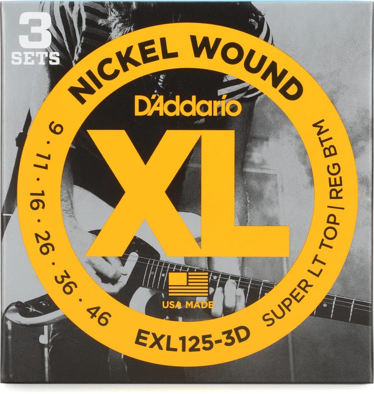 D'Addario EXL125 XL Nickel Wound Electric Guitar Strings - .009-.046 Super Light Top/Regular Bottom (3-pack)