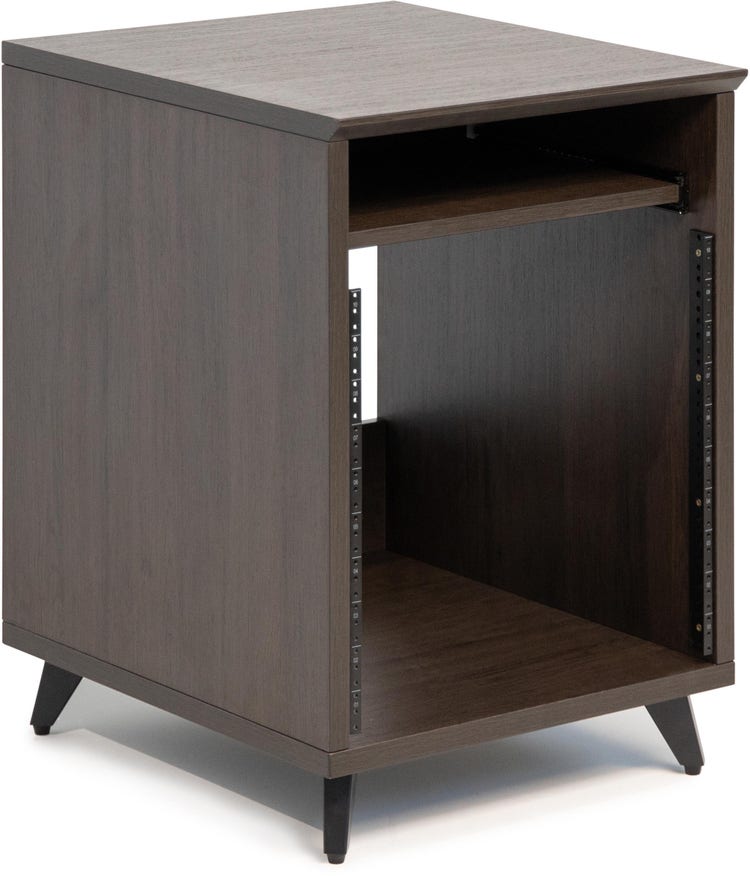 10U Wood Studio Side Rack with Tabletop, Slide-out Tray, and Leveling Feet - Dark Walnut