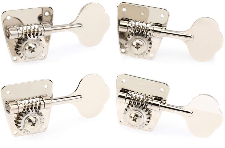 Bass Guitar Tuners, 4 In-line, Clover Shape, and 20:1 Ratio - Nickel