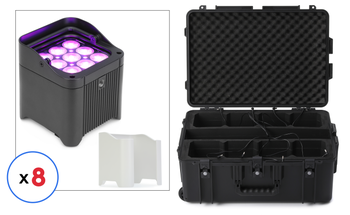 Battery Powered, Wireless Quad-color LED PAR Light with DMX, D-Fi, and RF Remote Control, TRUSST Compatibility, OLED Screen, and Magnetic Diffuser