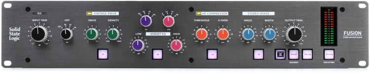 Master Processor with Vintage Drive, Violet EQ, HF Compressor, Stereo Image Enhancer, and SSL Transformer Circuits