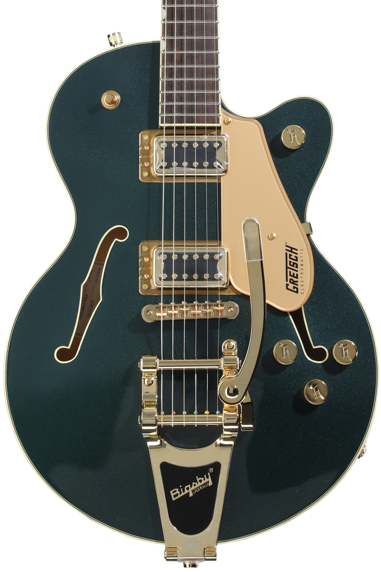Semi-hollowbody Electric Guitar with Laminated Maple Body, Maple Neck, Laurel Fingerboard, 2 Humbucking Pickups, and Bigsby Vibrato Tailpiece - Cadillac Green