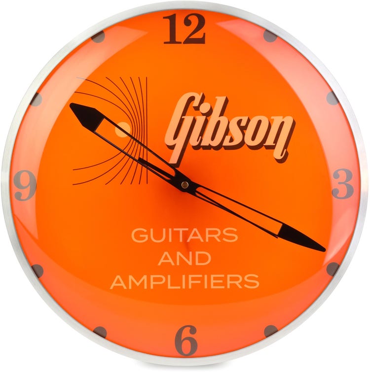 Vintage Gibson Wall Clock with LED Backlighting and Aluminum Frame - Kalamazoo Orange