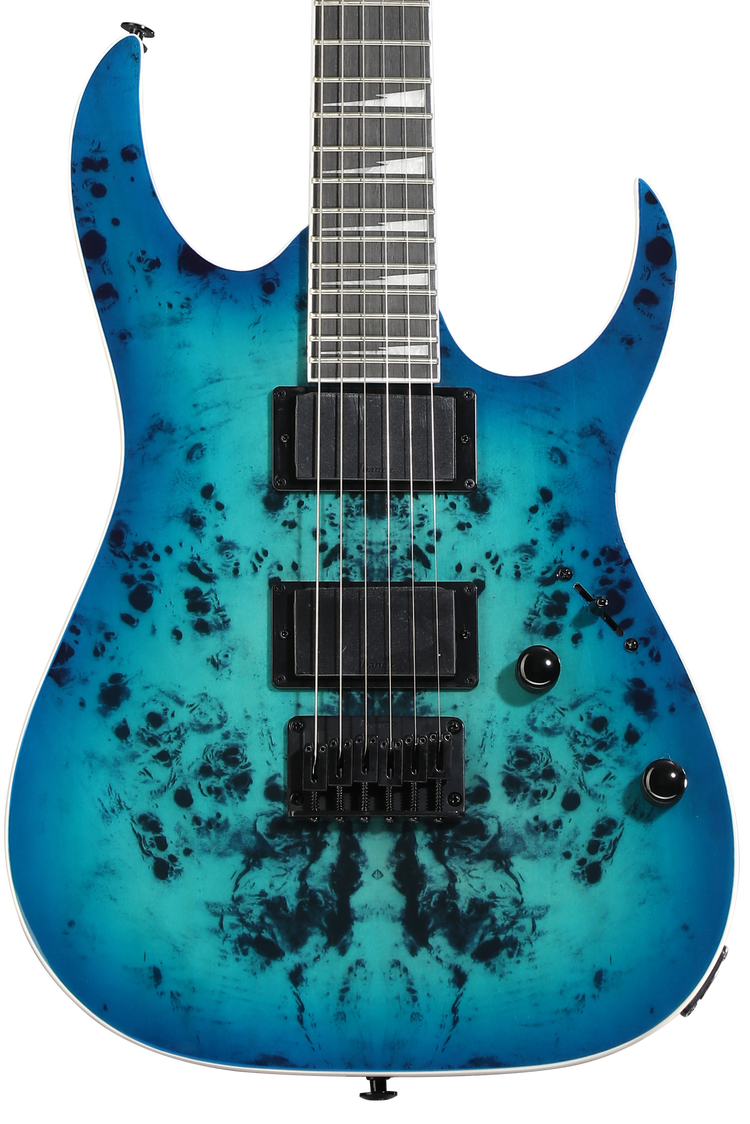 6-string Electric Guitar with Okoume Body, Poplar Art Grain, Maple Neck, Purpleheart Fingerboard, and 2 Humbucking Pickups - Aqua Burst