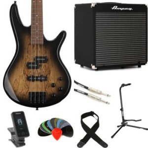 Ibanez Gio GSR200SMNGT Bass Guitar and Ampeg Rocket Amp Essentials Bundle - Natural Gray Burst