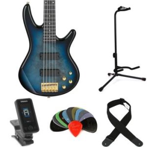 Ibanez Gio GSR205PC 5-string Bass Guitar Essentials Bundle - Transparent Marine Burst
