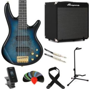 Ibanez Gio GSR205PC 5-string Bass Guitar Amp Essentials Bundle - Transparent Marine Burst