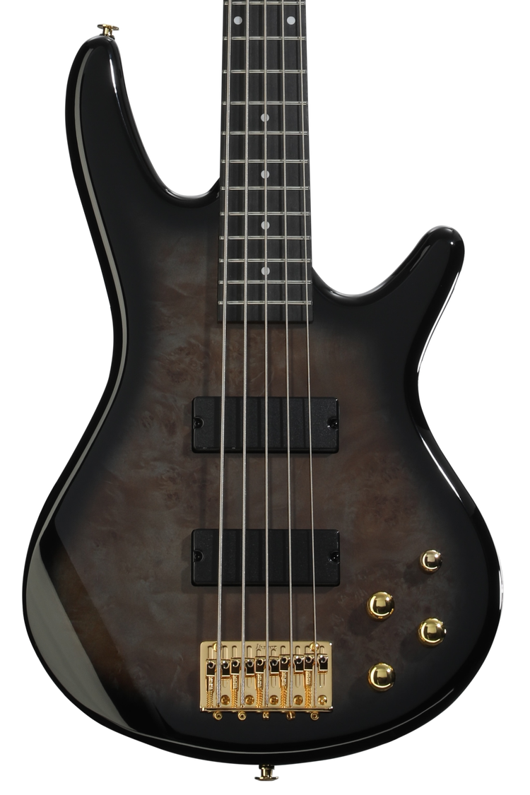 5-string Electric Bass with Okoume Body, Maple Neck, Purpleheart Fingerboard, and 2 Humbucking Pickups - Transparent Pale Black Burst