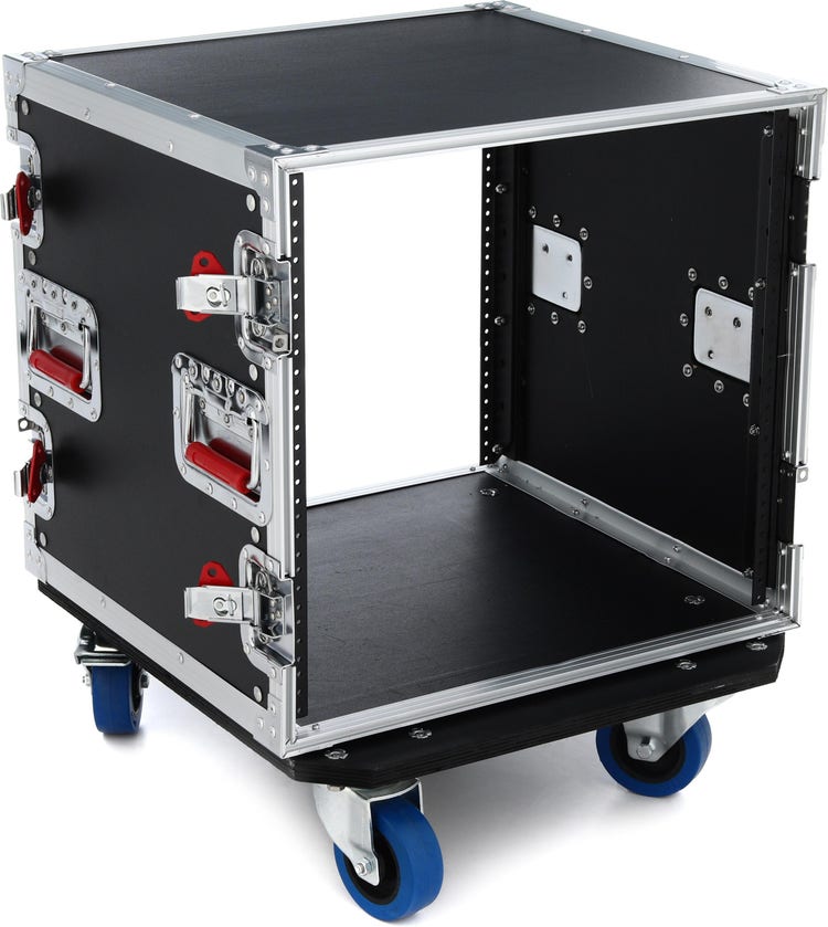10U Rack Case with 17" Rackable Depth, Laminated 9mm Plywood Construction, Heavy-Duty Recessed Hardware, and Casters