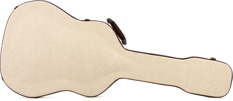 Deluxe Wood Case for Acoustic Dreadnought Guitar with Burlap Exterior, Crushed Velvet Interior, Antique Brass Hardware, and Internal Accessory Compartment - Burlap with Espresso Trim