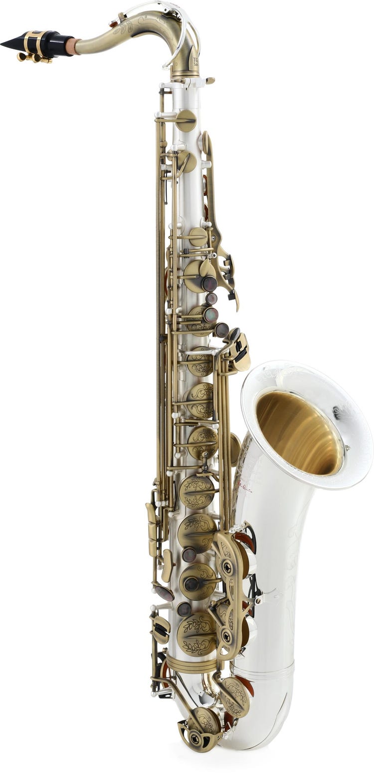 Growling Sax Roar Professional Tenor Saxophone - Dull Silver Body, Antiqued Keys And Key Guards, Silver-plated Bell and Bow