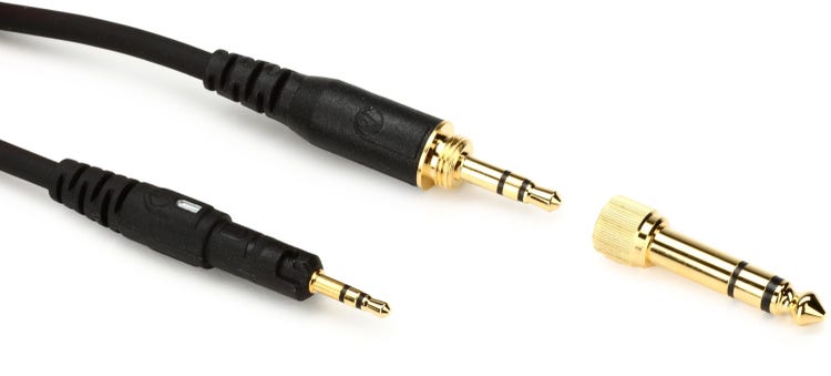 3.9'-9.8' Coiled Headphone Cable with 2.5mm Male and 3.5mm Male Connectors and 1/4" Screw-on Adapter - Black