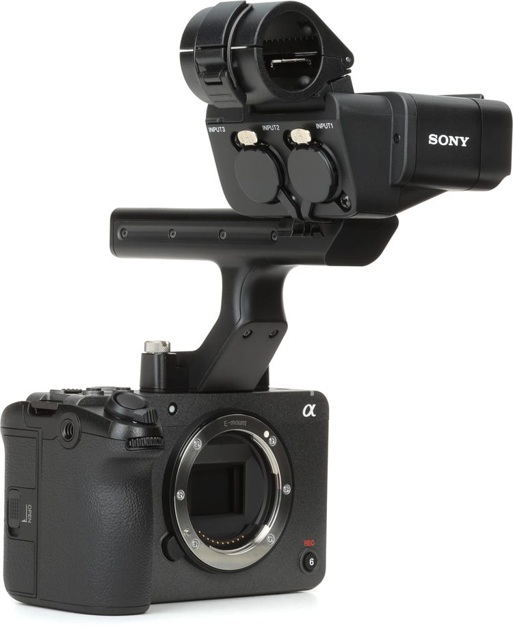 Mirrorless Camera Body with Super 35mm Format 20.1MP Exmor R APS-C CMOS Sensor, S-Cinetone, Autofocus, 4K HDR, 2 Card Slot, 3 x 1/4" Mounting Points, E-mount Interchangeable Lens System, and XLR Handle Unit