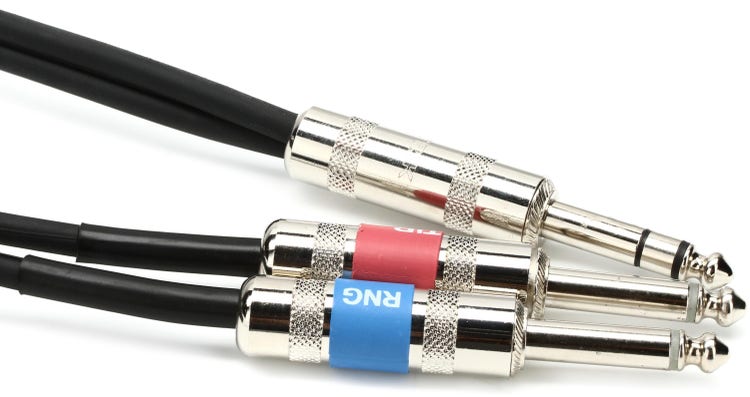 Insert/Stereo Breakout Cable, 1/4" TRS Male to Dual 1/4" TS Male Connectors, 20 foot Long