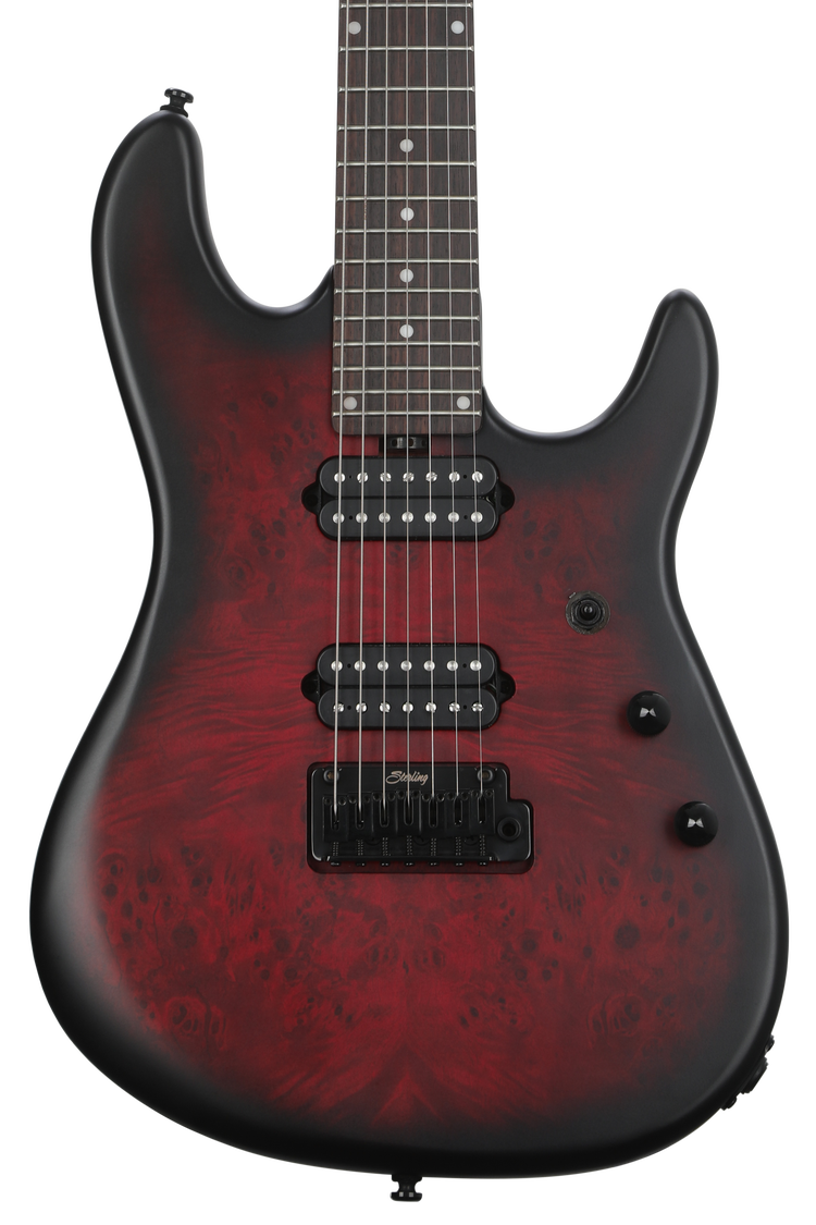 Sterling By Music Man 7-string Jason Richardson Signature Electric Guitar - Dark Scarlet Burst Satin