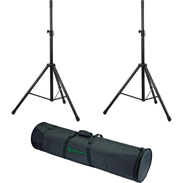 K&M 21436 Aluminum Speaker Stand Pair with Carrying Case - Black