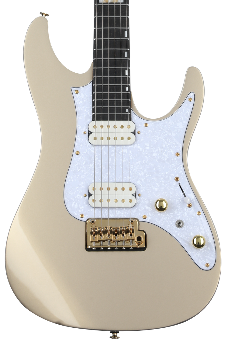 Solidbody Electric Guitar with Ash Body, Maple Neck, Ebony Fingerboard, 2 Active Humbucking Pickups, and Gotoh T1502 Tremolo - Gold
