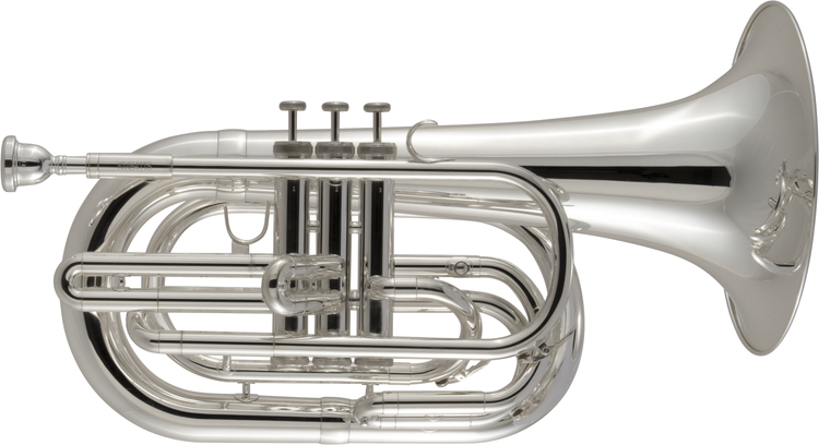 Marching Baritone Horn with 10" Yellow Brass Bell, .560" Bore, Small Shank Mouthpiece, and Case - Silver-plated