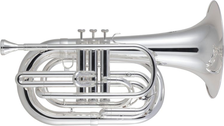 Marching Baritone Horn with 10" Yellow Brass Bell, .560" Bore, Large Shank Mouthpiece, and Case - Silver-plated