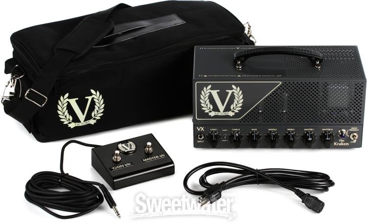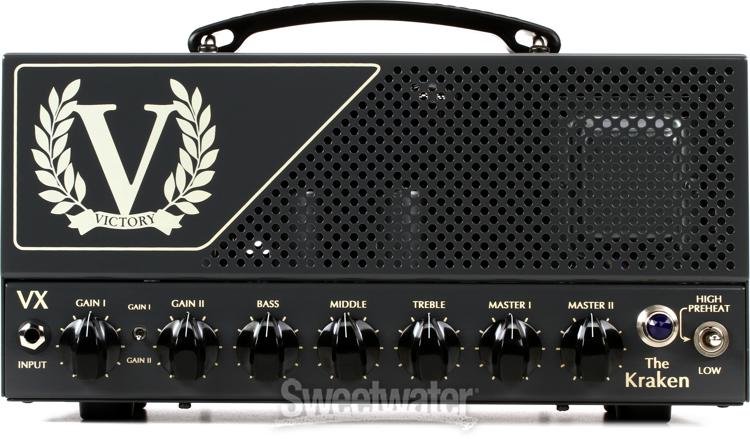 Dive into a ferocious ocean of British/American tonal fusion with Victory’s VX The Kraken 50-watt Tube Head. Ask any guitarist at Sweetwater, and they'll tell you that there's nothing like the tonal qualities of a true tube amp. With the tempestuous VX Kraken, gain aficionados and extended-range players can prepare to set sail with an authentic 2-channel tube amp that submerges the limits of "small" amp capabilities. You can navigate two gain modes: I for warm, classic British tonality; and II for scorching high-grain American grind. You're also armed with a robust control set and flexible switching capabilities. Finally, with a convenient handle and lightweight design, you can easily transport The Kraken around for any touring excursion.