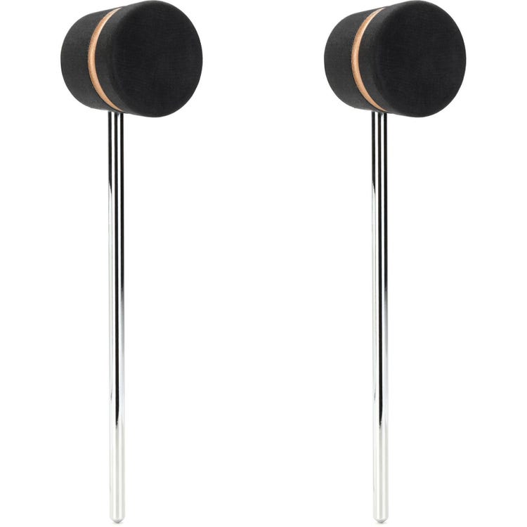 Low Boy Wood Bass Drum Beater (2 Pack) - Lightweight, Black with Copper Stripes