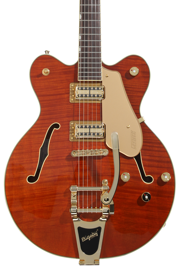 Semi-hollowbody Electric Guitar with Okoume Body and Top, Okoume Neck, Rosewood Fingerboard, 2 Humbucking Pickups, and Bigsby B70 Vibrato - Roundup Orange Stain