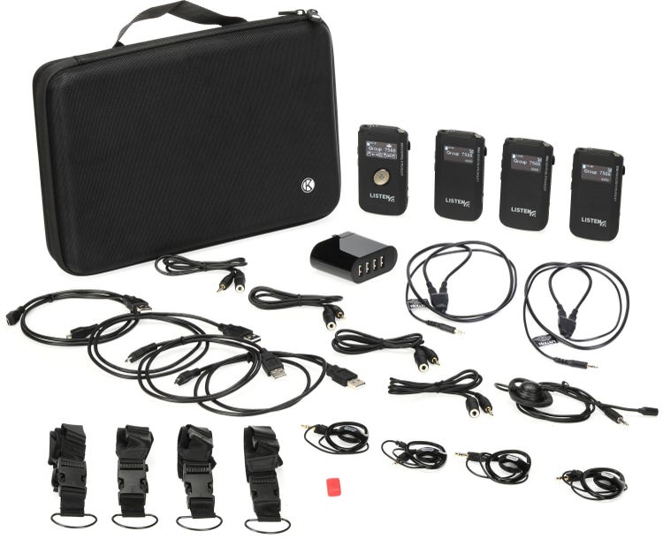 Assisted Listening System with Transceiver, 3 Recievers, 1 Headset Microphone, 2 Neck Loops, Charger, Soft-shell Case, and Assistive Listening Signage Kit