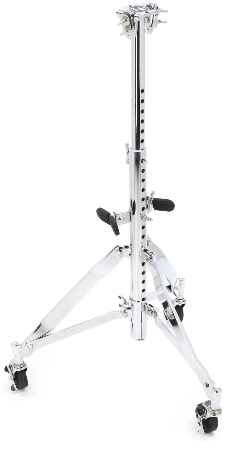 Steel Conga Stand with Drum Separators, Slide Mounting, Braking Casters, and Height Adjustment