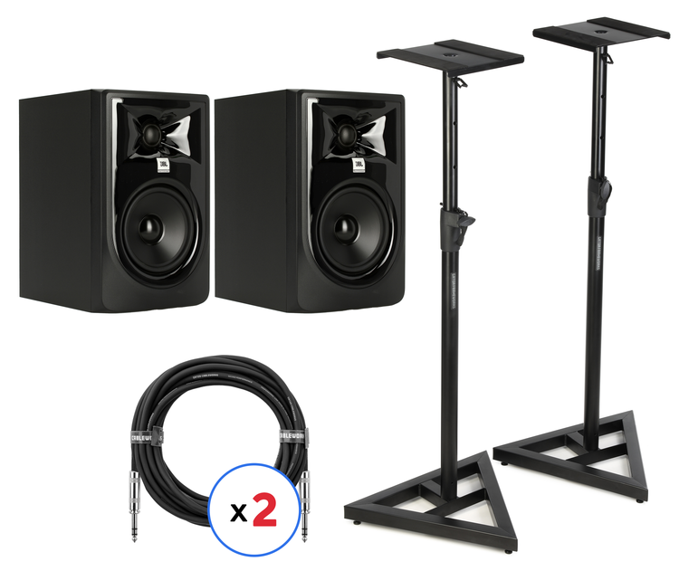 JBL 305P MkII 5-inch Powered Studio Monitor Pair with Stands and Cables