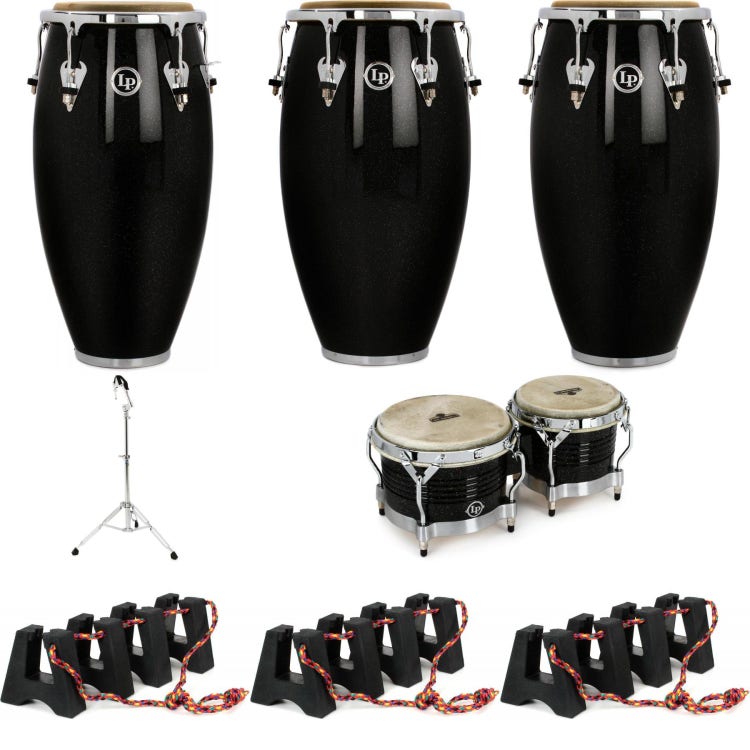 Latin Percussion Matador Wood Conga Set with Bongos and Stand - 11-/11.75-/12.5-inch Black Nebula - Sweetwater Exclusive