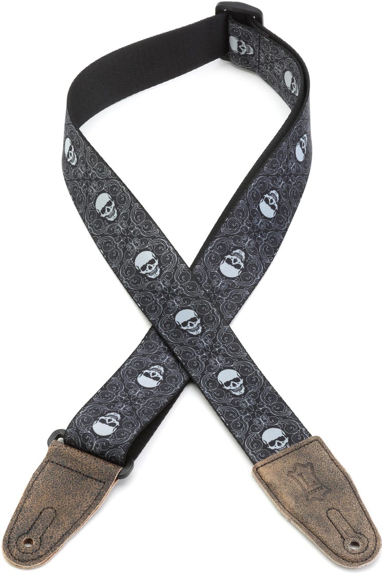 Levy's MDL8 2-inch Printed Polyester Guitar Strap with Leather Ends - Black Skulls
