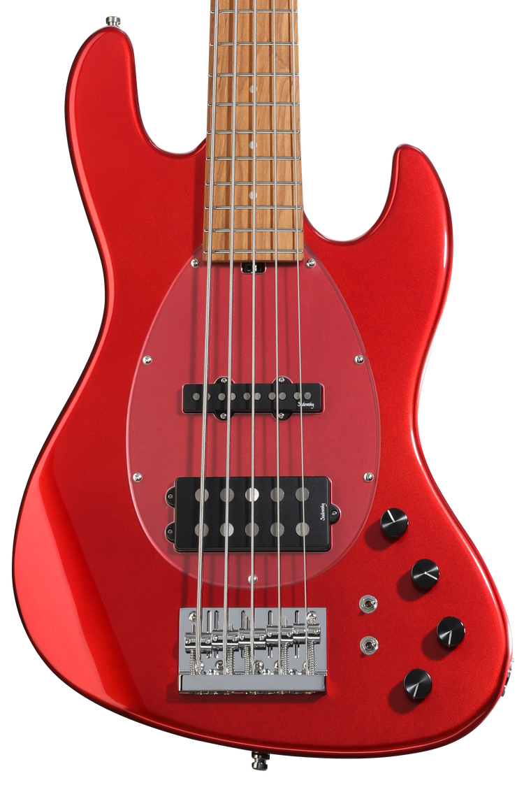 5-sting Electric Bass with Okoume Body, Roasted Maple Neck, Roasted Maple Fingerboard, 1 Single-coil Pickup, and 1 Humbucker Pickup - Candy Apple Red