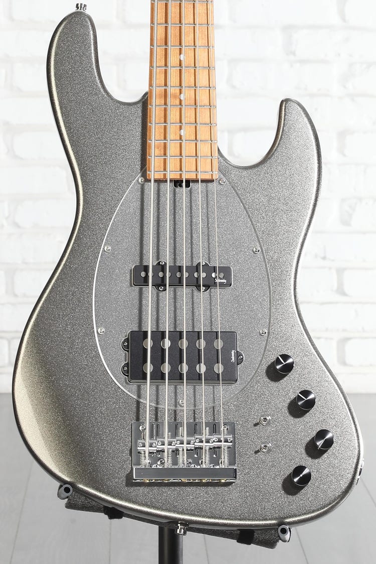 5-sting Electric Bass with Okoume Body, Roasted Maple Neck, Roasted Maple Fingerboard, 1 Single-coil Pickup, and 1 Humbucker Pickup - Solid Silver Metallic