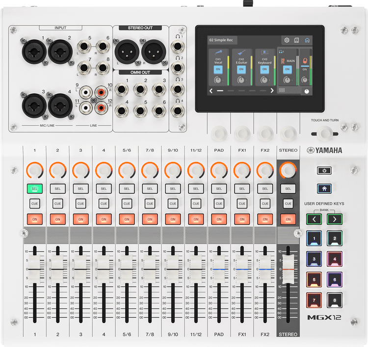 12-input Digital Mixer with 11+1 Faders, 4 Mic Preamps, 4.3" Touchscreen, 16-track Recorder, Bluetooth, and DSP - White