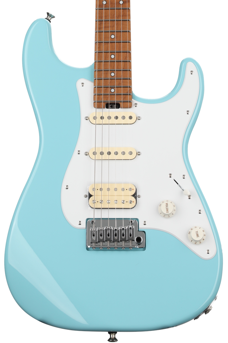 Solidbody Electric Guitar, Signature, with Basswood Body, Maple Neck/Fretboard, 2 Single-Coil Pickups, 1 Humbucking Pickup, and Tremolo - Daphne Blue