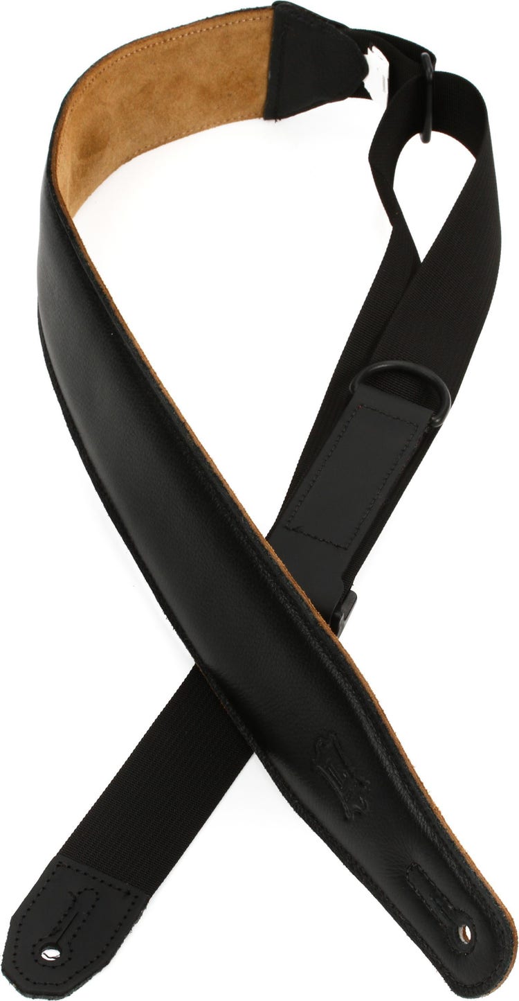 2.5" Garment Leather Guitar Strap with RipChord Adjustment, Suede Backing, and Leather Ends - Black