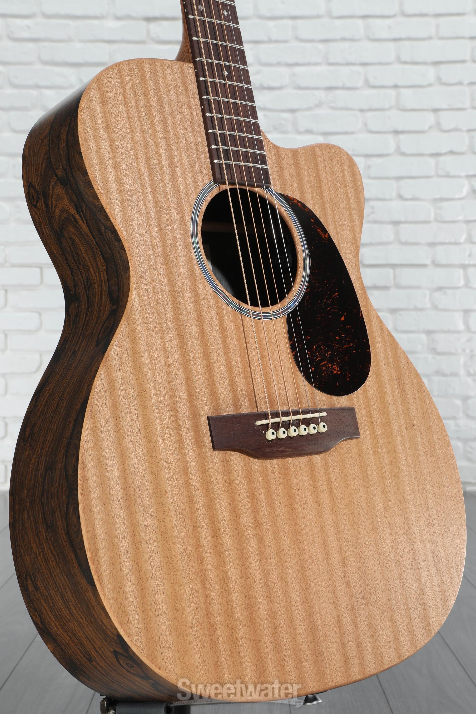 Combining Martin’s ever-versatile OM body shape with a convenient cutaway, this limited-edition Martin OMC-X2E Ziricote Special brings stage-ready acoustic-electric performance and stunning aesthetic upgrades to Martin’s Road series. This long-scale Orchestra Model guitar features a solid sapele top with scalloped X-bracing to deliver a warm, crisp, and punchy unplugged character. HPL (high-pressure laminate) back and sides complete the body with a bold ziricote pattern and road-ready durability. On the opposite end, the OMC-X2E Ziricote Special sports a fast-playing Performing Artist neck profile and a 16-inch-radius fingerboard, with the latter boasting old-school long diamond and square inlays. You also get a top-shelf set of satin chrome closed-back tuning machines. It’s all topped off with Martin’s E1 electronics — a package that captures every nuance of your acoustic’s natural timbre, featuring a built-in tuner and comprehensive controls.