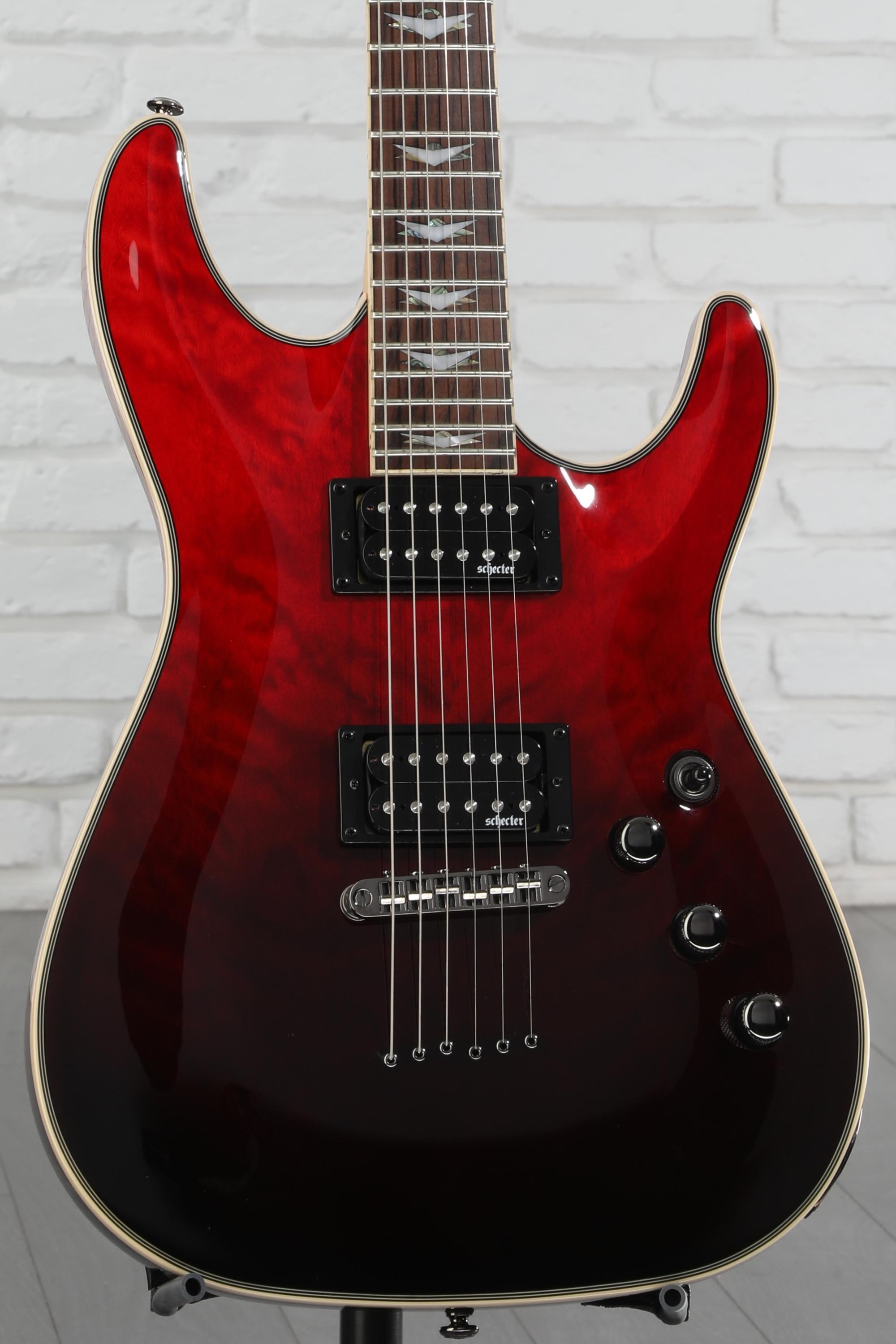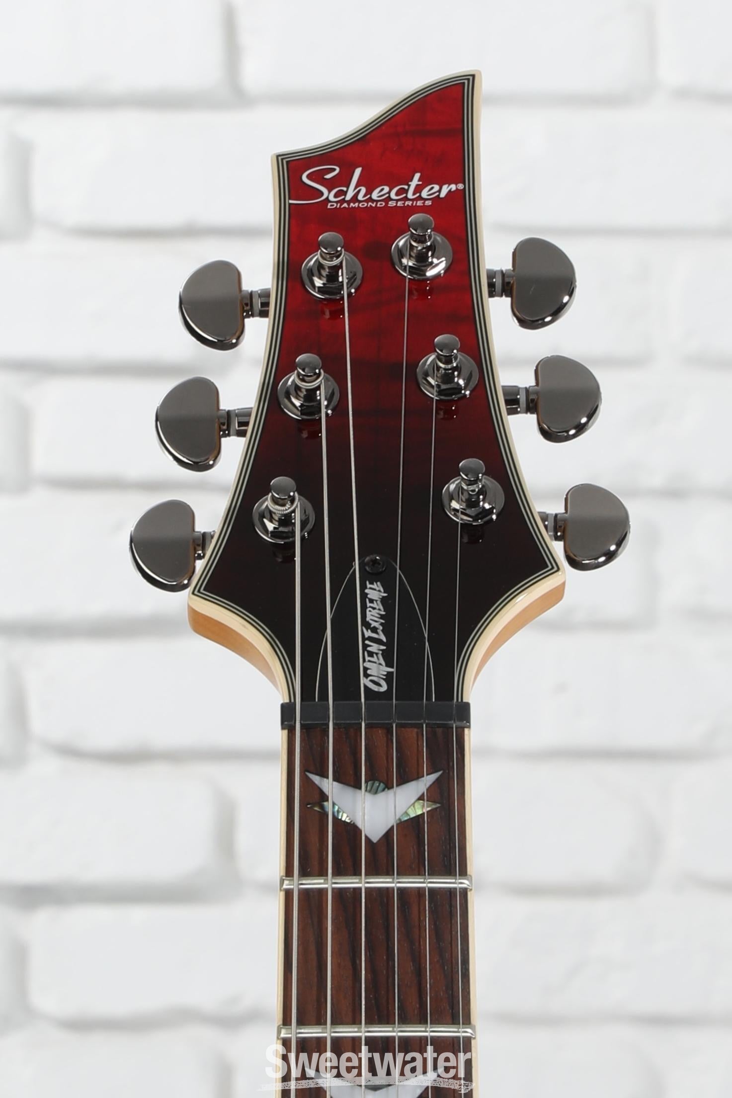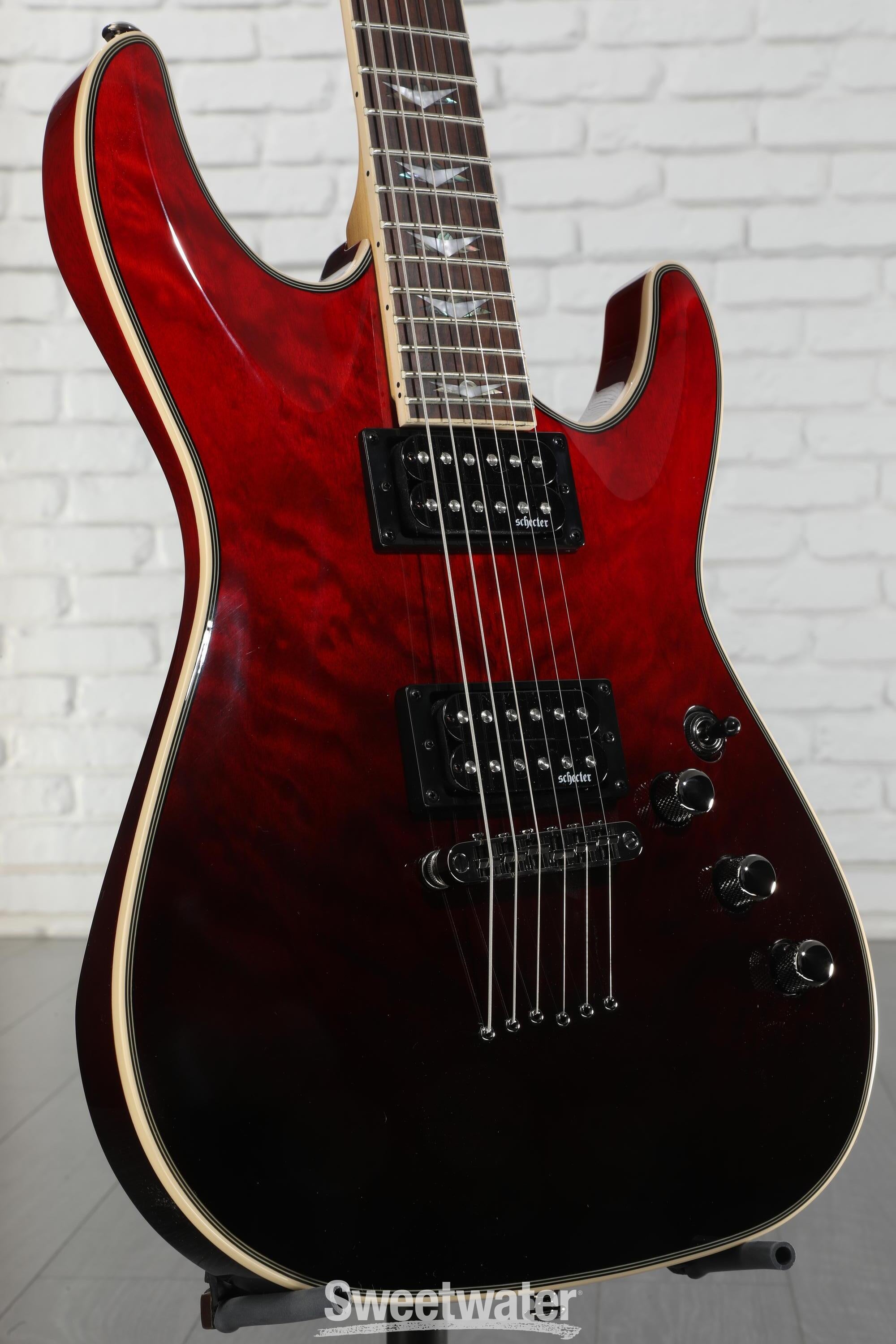 If you've been searching for a dual-humbucker shred machine that plays right, sounds great, and doesn't break the bank, then you can be sure the Schecter Omen Extreme-6 checks all the right boxes. Its thin "C" maple neck with flat-radius rosewood fingerboard and 24 jumbo frets lay the foundation for everything from fast runs to finger-tapping exploits. Its joined by a stunning quilt maple-topped mahogany body with a deep gloss finish and multi-ply crème binding, giving this axe tons of presence under stage lights. Sonically, the Omen Extreme-6's capable Diamond Plus humbuckers with push-pull coil splits provide you with six pickup sounds for claiming your space in a mix. On the hardware side, you get a tuning-stable string-through body with Tune-o-matic bridge and black chrome Schecter tuners to help you look and sound your best in any performance setting. If you're looking for a springboard into technical and aggressive styles of playing, Sweetwater guitar players recommend the Omen Extreme-6 for beginners and intermediate players alike.
