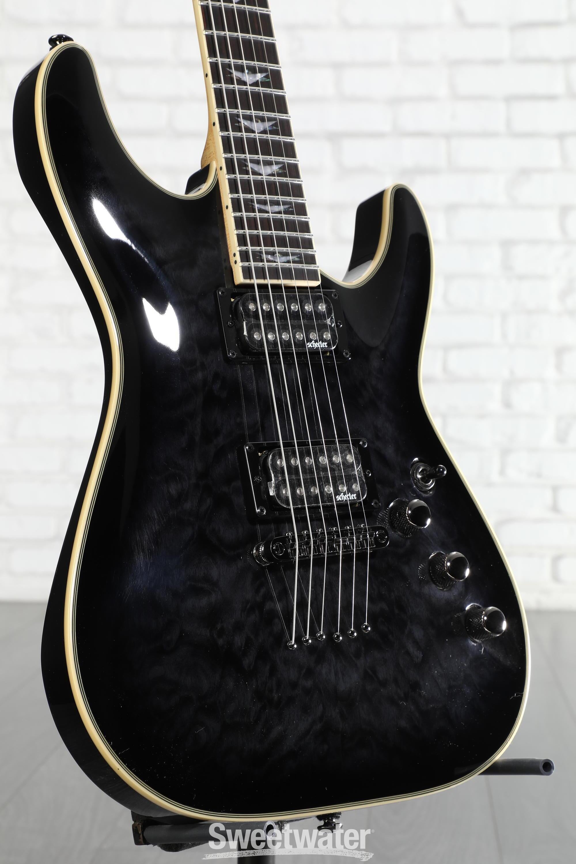 If you've been searching for a dual-humbucker shred machine that plays right, sounds great, and doesn't break the bank, the Schecter Omen Extreme-6 checks all the right boxes. Its thin "C" maple neck with flat-radius rosewood fingerboard and 24 extra-jumbo frets lay the foundation for everything from fast runs to finger-tapping exploits. Its joined by a stunning quilt maple-topped mahogany body with a deep gloss finish and multi-ply crème binding, giving this axe tons of presence under stage lights. Sonically, the Omen Extreme-6's capable Diamond Plus humbuckers with push-pull coil splits provide you with six pickup sounds for claiming your space in a mix. On the hardware side, you get a tuning-stable string-through body with Tune-o-matic bridge and black chrome Schecter tuners to help you look and sound your best in any performance setting. If you're looking for a springboard into technical and aggressive styles of playing, Sweetwater guitar players recommend the Omen Extreme-6 for beginners and intermediate players alike.