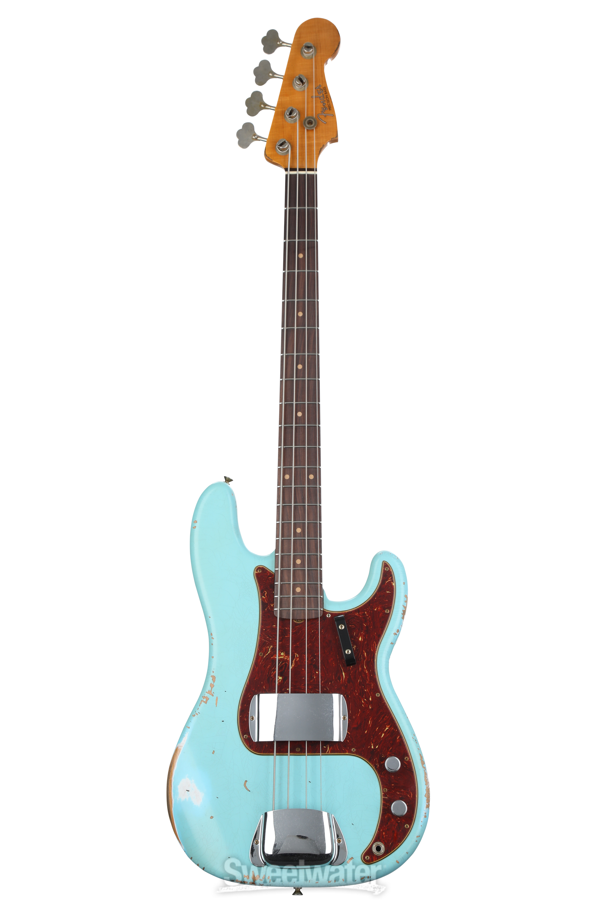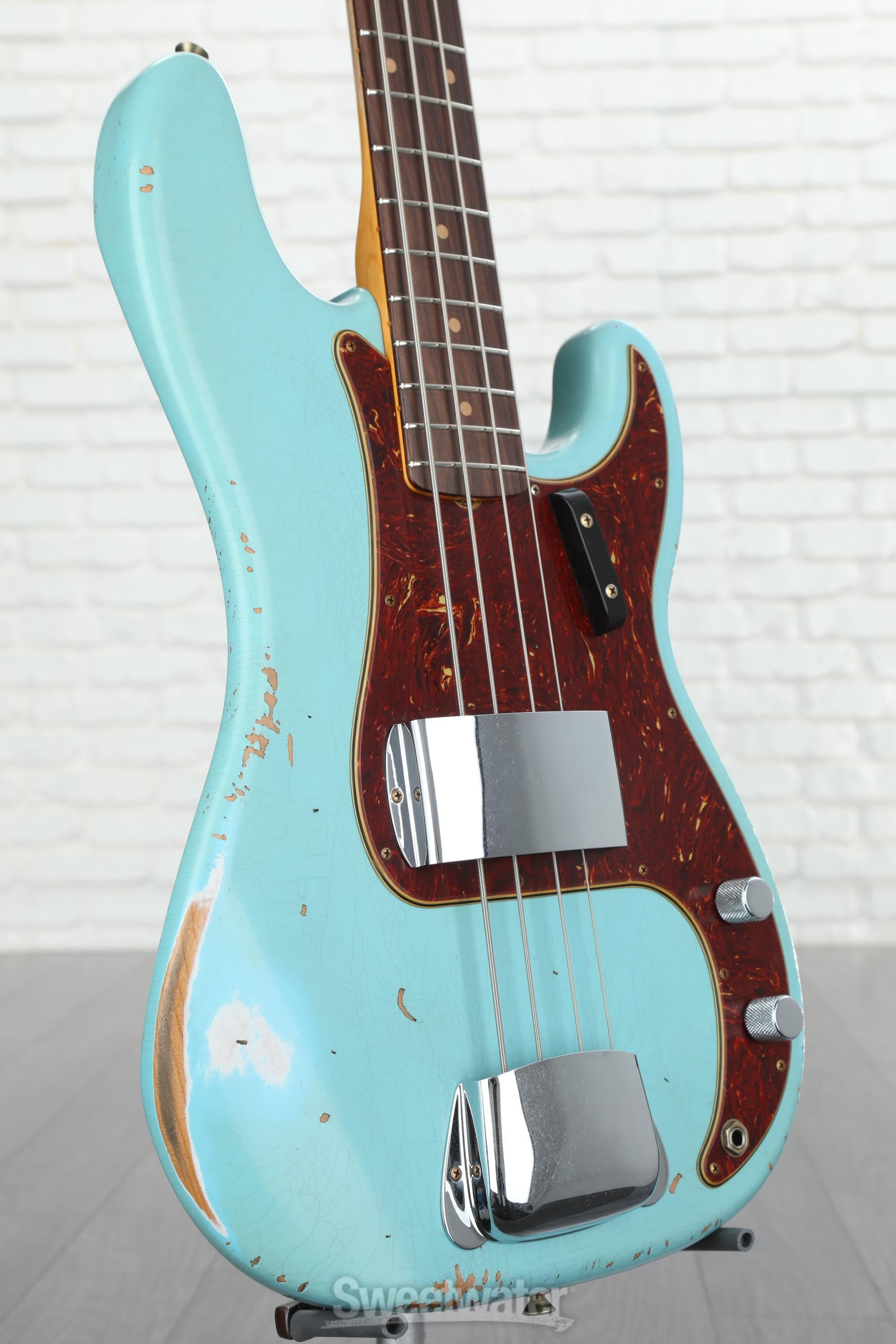 The Fender Custom Shop’s Limited-edition ’63 Precision Bass Heavy Relic is positively beaming with swinging 1960s style. From the lightweight alder body to the maple neck’s chunky ’60s oval “C” profile, this 4-string represents the very best of Fender’s time-honored 4-string tradition. And while the rosewood fingerboard’s curvaceous 7.25-inch radius conforms to period-correct specs, even Sweetwater’s most die-hard vintage Fender fanatics can’t fault the Fender Custom Shop for loading this P Bass up with 20 medium-jumbo frets — a more modern spec, admittedly, but one that many bassists prefer over vintage-style speed-bump frets. Under the hood, the Limited-edition ’63 Precision Bass Heavy Relic features a Hand-wound ’62 Precision Bass Split-coil pickup, fulfilling the Precision Bass’ 7-plus-decade reputation for punchy mids, booming lows, and present top end. Finally, from the vintage-style Fender tuners to the ’59 P Bass Bridge, this instrument proudly displays a well-worn nitrocellulose lacquer Heavy Relic finish.