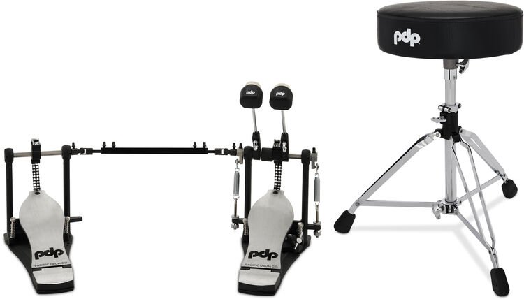 Equip your drum set with this PDP 800 Series Hardware Pack, a pro-inspired bundle of PDP’s flagship kit hardware designed to heighten your playing experience. Take advantage of double-braced legs, durable construction, lightweight composite memory locks, and extra-large anti-slip rubber feet for total security on virtually any performance surface. Likewise, dual-post bass drum pedals with double-chain concentric drive systems, cast footboards, needle-bearing hinges, and offset toe clamps allow drummers to configure, adjust, and play with as much personalized command as their performance demands. Optimized for manageable mobility, the PDP 800 Series Hardware Pack is a favorite among Sweetwater's gigging drummers, as it eases the burden of transport and load-ins/-outs. This specific PDP 800 Series 2-piece Hardware Pack includes a PDD812 Double Bass Drum Pedal and a PDDT810RB Round-top Drum Throne. It's the perfect bundle for rounding out your stage-ready drum set with speedy attack and maximum playing comfort.