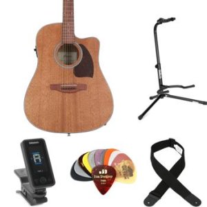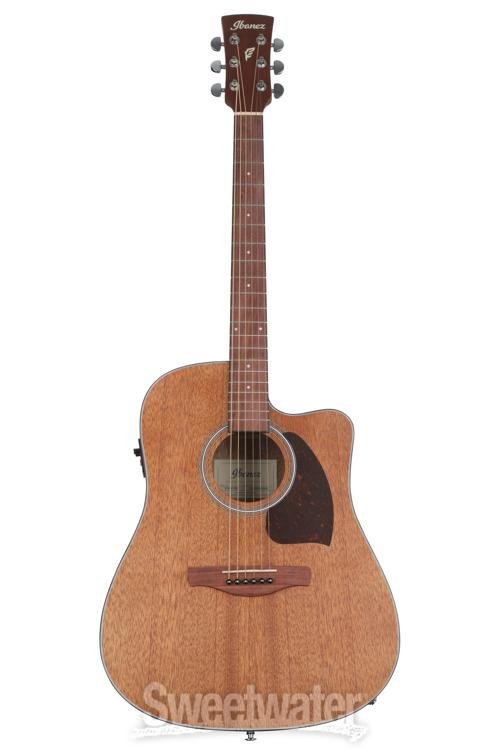 Boasting a thunderous dreadnought design and top-quality electronics, the Ibanez PF54CE is a truly do-it-all acoustic-electric guitar. This big-bodied dreadnought guitar’s solid meranti top and meranti back, sides, and neck supply a supremely warm and rich sonic voice, further bolstered by a charming open-pore finish. Guitarists looking to take their acoustic-electric playing to the next level will be sure to find favor with the PF54CE’s deep body cutaway, permitting access to the entire range of the nandu wood fingerboard. You also get a high-performance Ibanez AEQ-2T electronics system complete with an onboard tuner and flexible tone controls. Powerful, versatile, and ready to hit the stage, the Ibanez PF54CE is a superb choice for the musician seeking a Swiss Army knife of an acoustic-electric guitar.