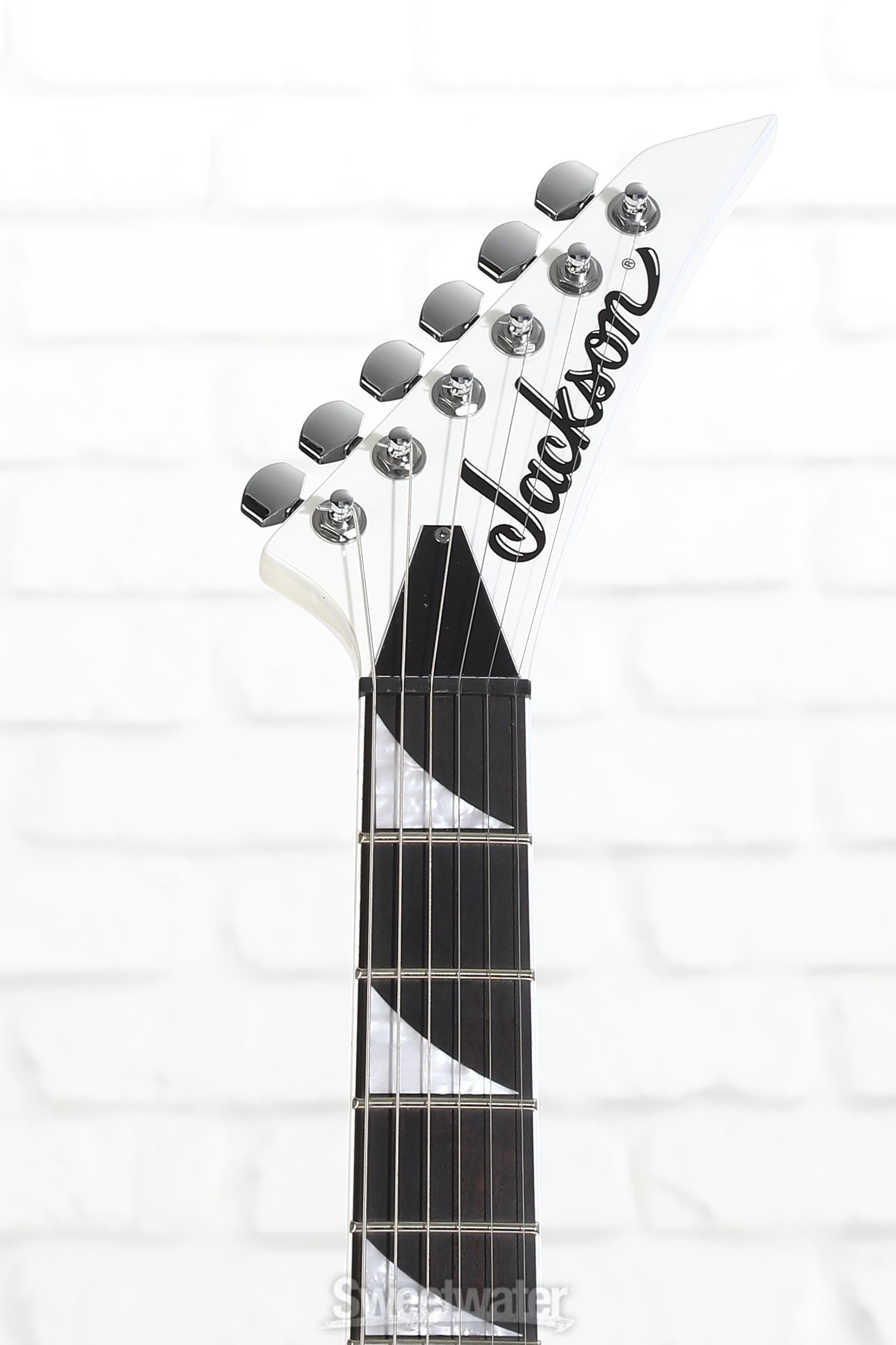 - Pearloid shark fin inlays and a bound fingerboard add classic Jackson visual appeal