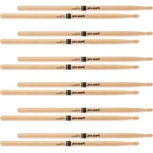 This pair of Pro-Mark TX5BW wood tip hickory 5B drumsticks features oval-shaped tips. These sticks are great for rock, heavy pop, country, or practice.