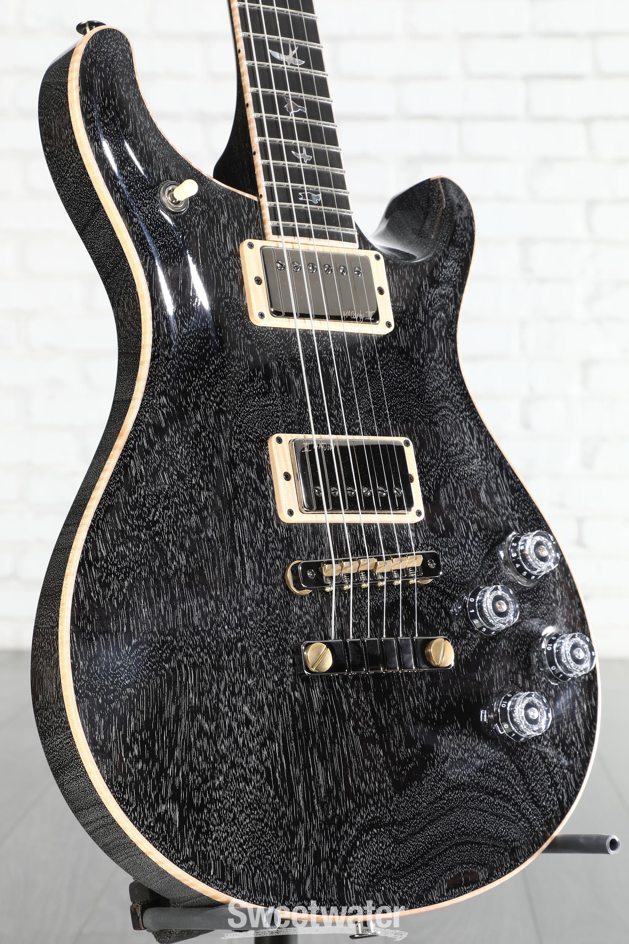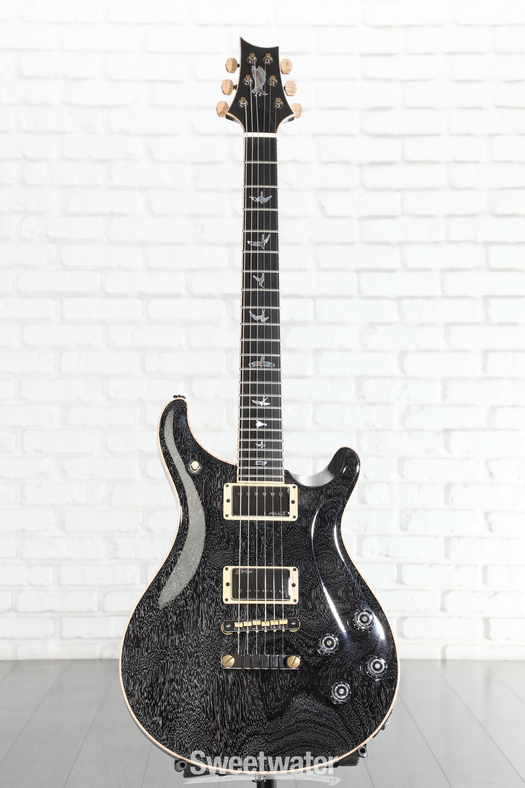 Showcasing Sweetwater-selected tonewoods and premium appointments, this PRS Private Stock #12032 McCarty 594 is an exceptional instrument, both visually and sonically. This vintage-appointed solidbody electric guitar flaunts a head-turning, black-stained African mahogany top and body, embellished with eye-grabbing white grain fill, lending it a spotlight-stealing appearance and acoustic properties that are nothing short of magical. Of course, this McCarty 594 is as playable as it is amazing to look at, thanks to its Pattern Vintage neck, 24.594-inch scale length, and lightning-fast ebony fingerboard. Moreover, when you plug it in, this McCarty 594 delivers a vintage-inspired sound with incredible vocal-like clarity, thanks to its McCarty III pickups. You also get a PRS 2-piece bridge and Phase III non-locking tuners with Wing buttons, priming this guitar for pulse-pounding playability with zero tuning woes. Sparkle resin Original Bird fingerboard inlays, black Delrin side markers, natural reveal maple binding, maple pickup rings, and a beguiling high-gloss nitro finish put the perfect final touches on this Paul Reed Smith Private Stock #12032 McCarty 594.